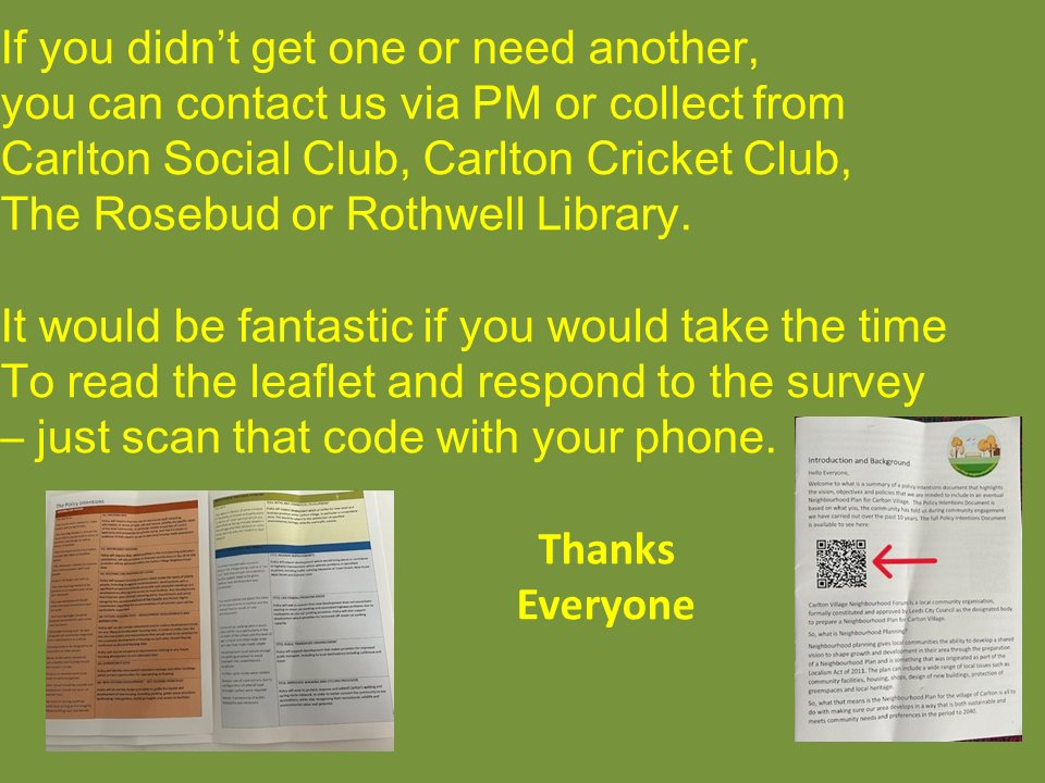 Please be aware if you wish to have any say about what you feel is best for Carlton and surrounding areas you will need to be putting in your viewpoint about where you feel possible new developments need to be. Please be aware for Carlton possibly these sites will have the biggest significance to the village