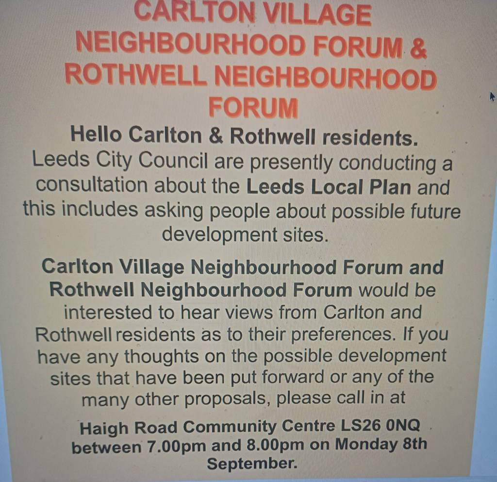We will be holding a joint meeting with Rothwell on Monday 8th September. Haigh Road Community Centre, Rothwell LS26 ONQ between 7pm and 8pm or alternatively if you cant make the meeting or wish to pm your views to us please do so.